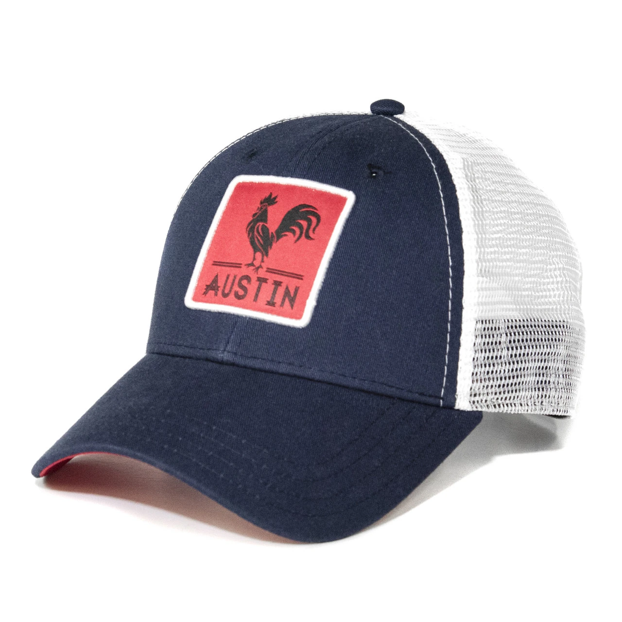 Navy/White Austin Rooster Square Patch Trucker Hat